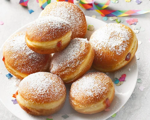 Frisch zubereitete Berliner, mit Marmelade gefüllt.